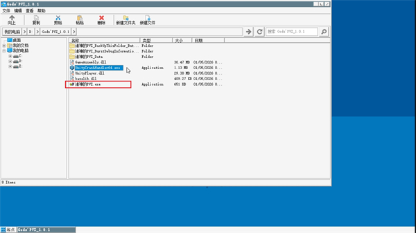 6、在文件夹内找到可执行文件 “诸神的PVZ.exe”(图标为蓝色盾牌+闪电组合);