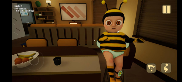 5. 返回一楼,为婴儿穿上蜜蜂服装——瞬间画风逆转!狰狞退散,萌感上线,连背景音效都会随之变得轻快柔和。