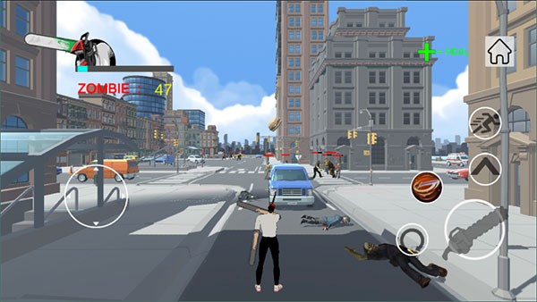 启动电锯瞬间触发粒子特效与音效强化,锁定僵尸后自动追踪切割,短时爆发清场如行云流水;