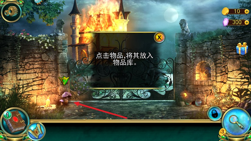 点击场景中醒目的蘑菇图标,将其收入物品栏备用;