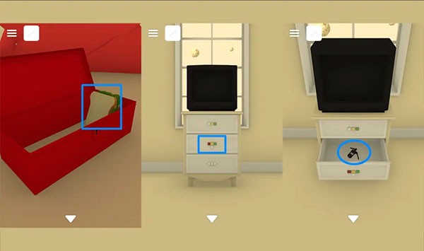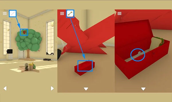 【钥匙】打开红色盒子,红色盒子里拿到【扳手】。