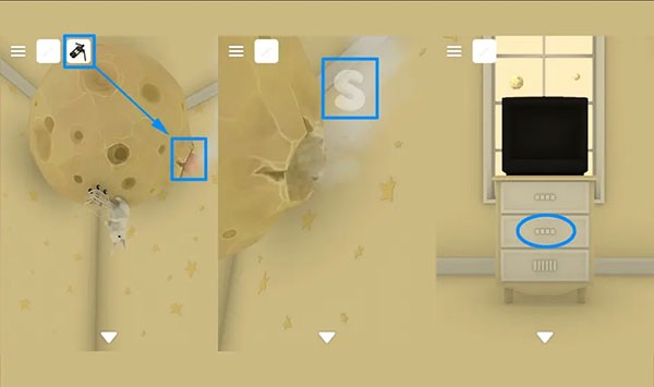 用【开瓶器】拔掉星球上的塞子,根据英文单词“STAR”打开柜子,拿到【螺丝刀】。