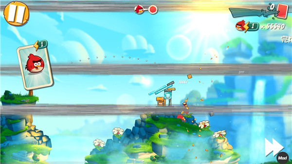 操作极简,上限极高:一根手指按住弹弓拖拽即可自由调节发射角度与力度;松手瞬间完成弹射。小鸟飞行途中,点击屏幕任意位置即可激活其独有技能——怒吼震落冰块、俯冲粉碎木梁、分裂三重打击、高空投蛋爆破……弹道轨迹实时可见,助你反复优化策略。关卡评分机制鼓励“少鸟通关”,用最少的小鸟、最精妙的连锁反应,达成满分三星!