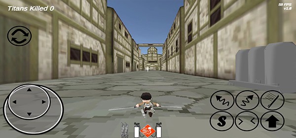 左手摇杆自由移动,右手滑动瞄准目标,指尖轻点即可释放立体机动装置——三步完成“位移→钩锁→突袭”连贯操作。无需复杂教程,10秒掌握核心动作逻辑,让每一次腾空、每一次俯冲都如动画般丝滑流畅。