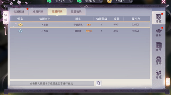 更配备完整社交基建:实时成员战力面板、跨服仙盟排行榜、职位变动日志、私聊互通系统,让每一次集结都有据可依,每一份付出都被看见。