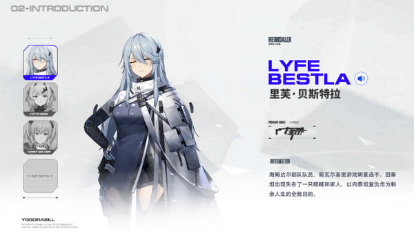 世界公司顶尖研究员,主动脱离实验室加入海姆达尔。缺乏实战经验却拥有超前战术演算能力,用数据与逻辑重构战场规则。