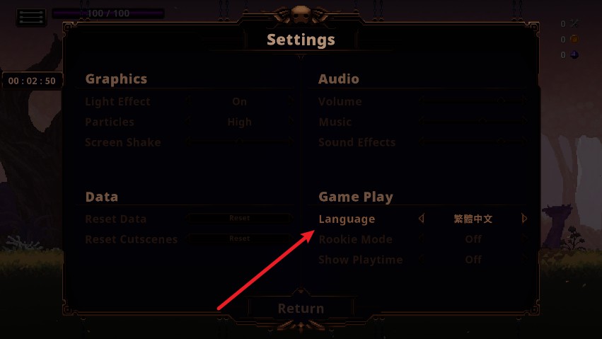 游戏默认语言为英文,但支持完整中文界面。进入游戏后,请按以下三步快速切换: