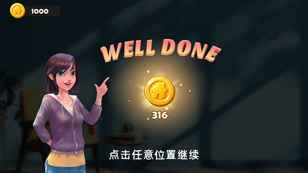 每关设有明确目标(如消除指定数量方块),并在限定步数内完成。成功通关后,即时获得金币与稀有装饰物奖励;金币可解锁新家具,装饰物则直接拖入房间使用。消除越高效,装修进度越快——解谜能力与设计成果实时挂钩,成就感层层递进。