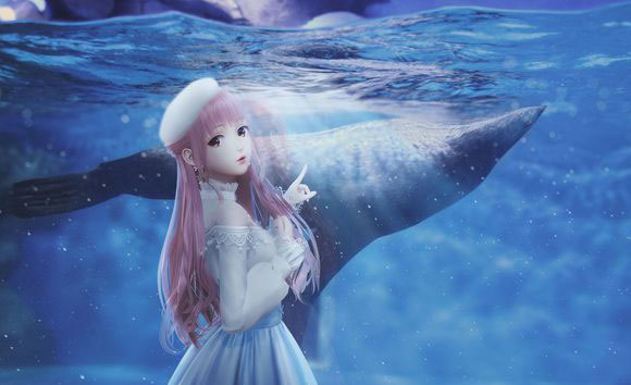 魔法祝福裙复苏版,蓝调梦幻,仿佛游弋于深海光影之间。