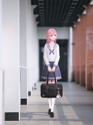 清爽短裤+白色短袖衫,青春活力满分(当前版本暂未实装露腹效果,期待后续优化)。