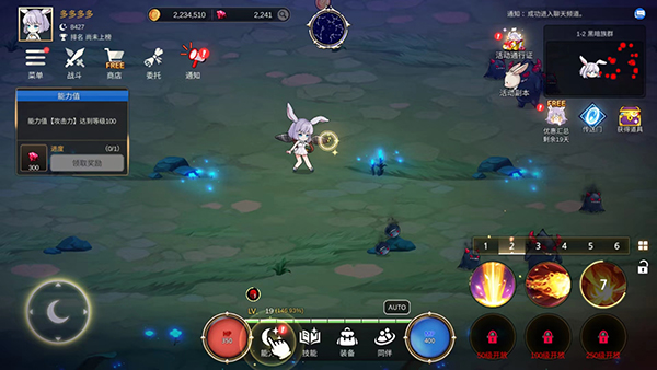 清新柔美的日系卡通画风,搭配细腻动态立绘与逐帧优化的技能特效;角色从初生月兔到闪耀星辉形态的全阶段进化,不仅改变外观,更伴随专属语音、动作与UI动效;背景音乐随场景流转,从静谧月林到激战深渊,沉浸感全程在线。
