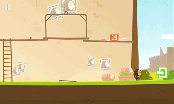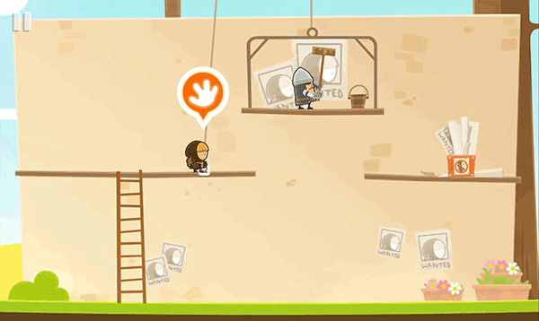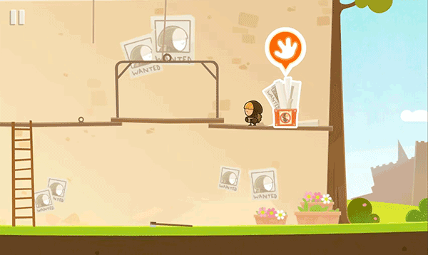 第二关升级挑战:目标物变为墙角海报。需攀爬楼梯→触发机关让平台坠落→灵活绕行→拾取海报→原路撤离。操作简洁,策略拉满,每一步都充满解谜快感。