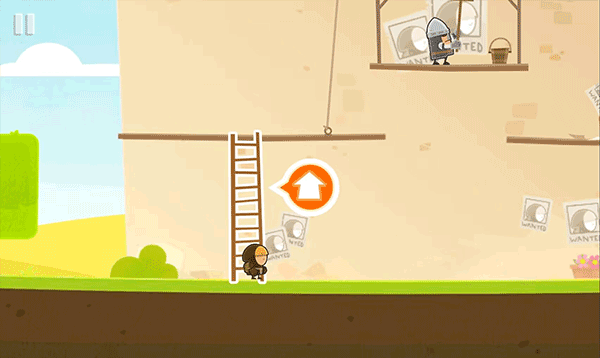 首关目标明确:点击篮子图标触发任务→右下角对勾确认行动→操控小盗贼移动至树下,轻点手掌图标拾取篮子→最后点击右下角“逃走”按钮,完美收工!