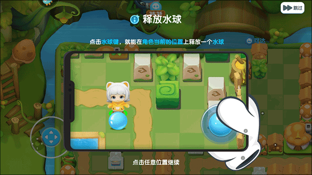 首次启动游戏后,只需完成简单引导即可畅玩——勾选协议后点击“开始游戏”,随即进入沉浸式剧情教学;通过连续点击对话推进新手剧情,熟悉世界观;随后跟随指引操控角色移动、抵达互动点位;学习核心操作:点击屏幕释放水球,精准命中障碍物触发华丽爆炸效果。全程无复杂门槛,1分钟看懂,3分钟开打!