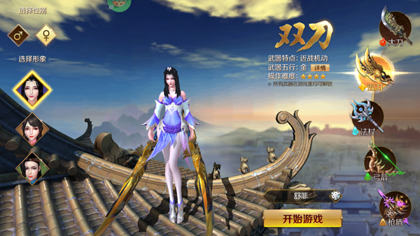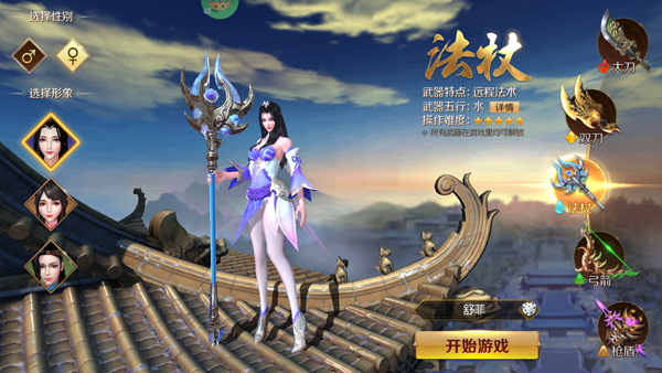 3、自定义角色ID、职业、性别及初始武器,确认即刻启程;