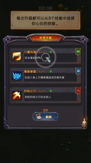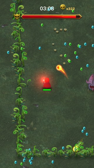 长按屏幕滑动即可自由移动角色——极简操作,极速上手。怪物从四面八方围袭而来,你必须边逃边战,在生死一线间寻找反击时机。击杀敌人有概率掉落经验球,拾取后即时获得经验;经验值满额即刻升级,并从三个随机技能中择一掌握——火焰爆裂、冰霜禁锢、雷电链击……不同组合触发截然不同的战斗风格。