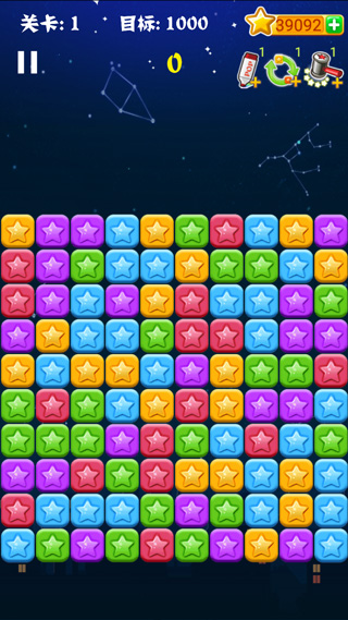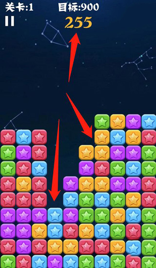 3、轻点任意相邻同色星星即可触发消除,系统自动累计分数;