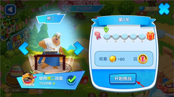 2、选择目标关卡,根据客人语音/文字提示(如“要草莓奶油+彩虹糖+熊二头像蜡烛”)定制专属蛋糕;
