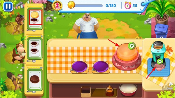 4、进入制作流程后,合理释放技能(如熊二“分秒必争”加速倒咖啡、光头强“时光冰冻”暂停计时),同步完成饮品+蛋糕双线任务,赢得全场欢呼!