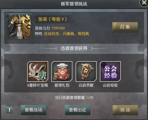 【叛军军团】——高强度PVE攻坚副本,成功讨伐可获海量战功、武将碎片宝箱、公会贡献及公会经验,是提升军团实力与个人战力的关键跳板。