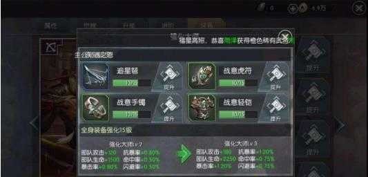 获得装备后,可通过“装备提升”大幅强化基础属性,消耗秘银即可升级——而秘银正是击败世界流寇的主要战利品,形成清晰正向反馈。当全身装备强化至指定等级,更可激活“强化共鸣”,触发全维属性飞跃式加成。切记:均衡强化各部位,避免资源过度倾斜单件装备。