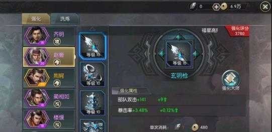 解锁后若属性不符需求?进入“洗练属性”环节:每次消耗1枚洗炼石,随机刷新该位置属性类型(骑兵/步兵/弓手专属),由你自主判定是否保留——例如项羽为骑兵,智力加成即无效,必须洗出“骑兵攻击加成”等适配词条。