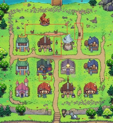 ? 角落区域:安放低频产出建筑(如小马城堡)及基础消耗品站点(药水铺、面包房),避免人流拥堵;