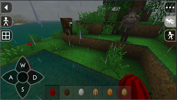 ? 硬核生存逻辑:温度系统实时影响生命值(淋雨/雪地久留会冻伤)、饥饿/口渴独立计量、昼夜交替触发野兽变异(满月夜狼变狼人);