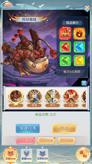 坐骑、道友、神兵、装备……所有深度养成系统均依赖于此!海量进阶材料集中产出,每日满额挑战不容错过。