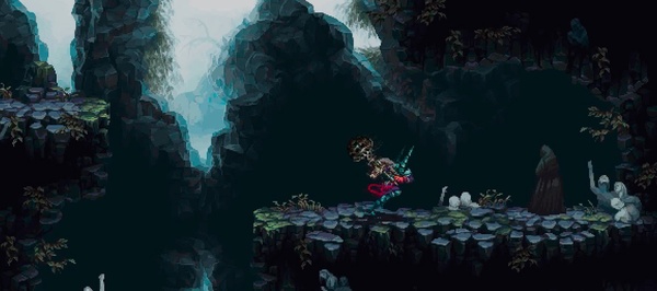 修女4|荆棘声林:使用二段跳抵达高处藤蔓缠绕的断壁,对准镜面反射角度发动双剑突刺,触发隐藏空间入口。