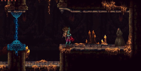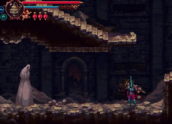 2、动态规避:进入上方垂直竖井前,利用二段跳与墙体蹬踏绕过巡逻的「忏悔守卫」,全程无需交战;