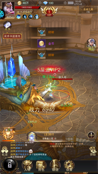 4、主线任务:推进主线不仅解锁新地图与剧情,每完成5层副本还可累积VIP积分,加速特权升级节奏。
