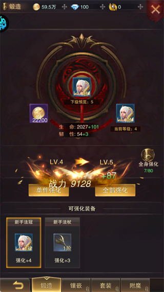 3、装备强化:使用金币对主战装备进行单件/批量强化,每提升1级显著增强暴击率与生存能力,是前期战力跃迁最稳路径。