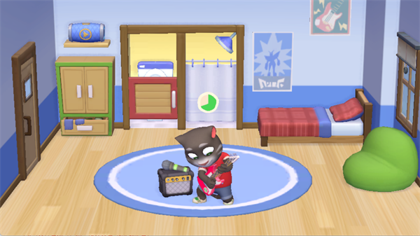 走进汤姆猫卧室,轻点吉他即可开启弹唱模式。随节奏轻点屏幕触发音符互动,不仅能解锁专属动画与语音彩蛋,还能稳步提升亲密度,解锁更多隐藏对话与剧情片段。
