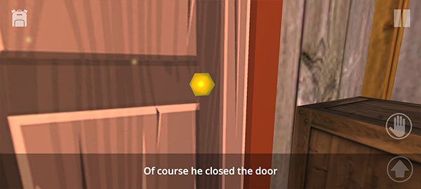 6、尝试开门失败后,立即切换探索模式:点击门口手掌图标触发互动反馈,确认常规出口不可行。