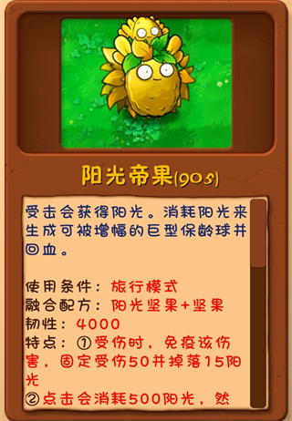 核心能力:4000点超高韧性,受击时免疫本次伤害并固定掉血50点、掉落15阳光;点击消耗500阳光,可生成巨型保龄球横扫全场并恢复自身血量——一果三用,攻守兼备。