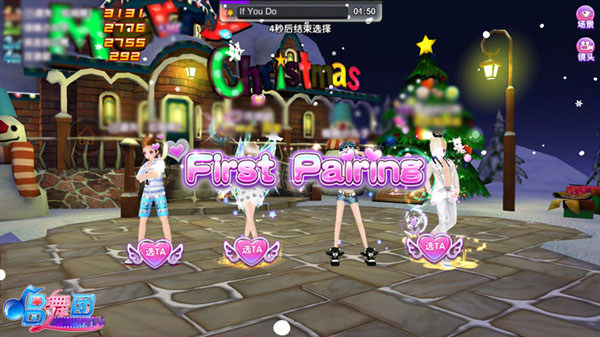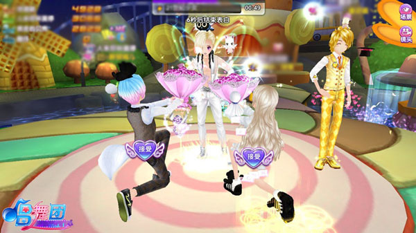 全程分四阶段推进,节奏紧凑、互动密集: 第一阶段【跳舞热身】:经典方向键+Beat击打,自由展现个人舞力; 第二阶段【心动表白】:全员站列,脚底浮现爱心按钮——5秒内快速点击心仪对象,手速决定缘分! 第三阶段【双向配对】:表白者单膝献花,被选者即时点击【接受】,成功即触发专属配对动画; 第四阶段【甜蜜约会】:配对成功者并肩而立,背景浮现巨型爱心,音符变为爱心形状,连击更有额外分数加成!