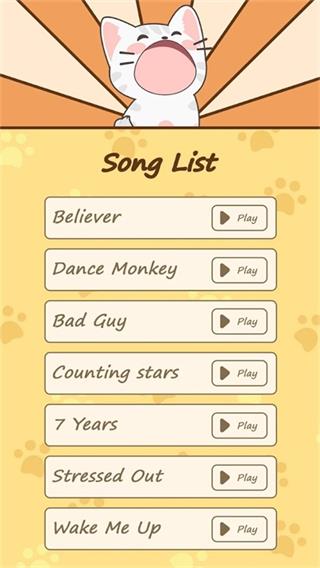 ④ 进入曲库自由选歌——不同BPM、风格与难度对应不同猫咪演出形态,让每一次游玩都独一无二。