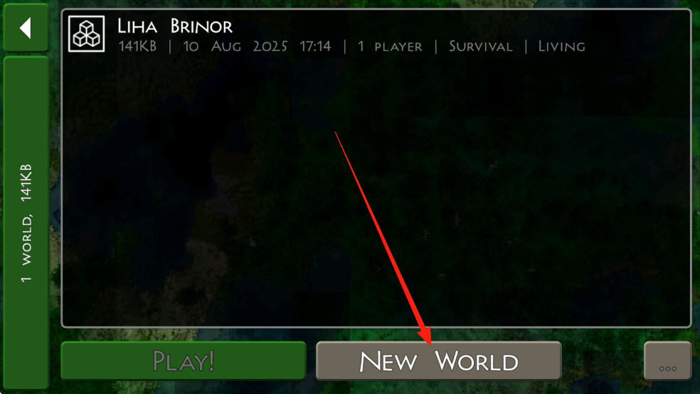 1、启动游戏,点击主界面【PLAY】进入世界管理页