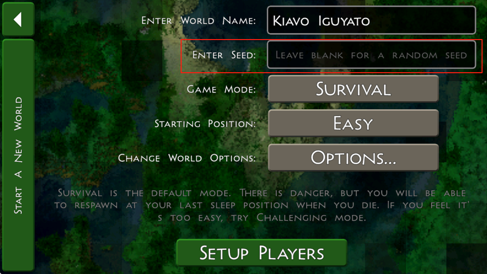3、输入自定义种子码,复刻理想地形;或直接跳过,生成随机高难度荒岛
