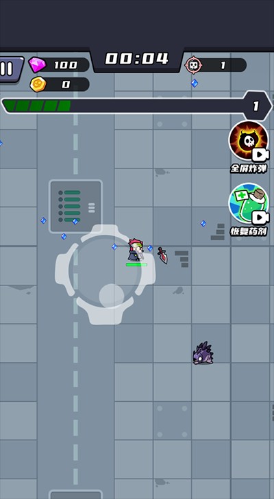 竖屏单手操作,按住拖动即可自由移动,全程自动瞄准射击,轻松拾取能量块与随机道具。面对一波波汹涌而来的丧尸潮,体验行云流水的“割草式”战斗快感——操作极简,但策略不减,节奏紧凑,爽感拉满。
