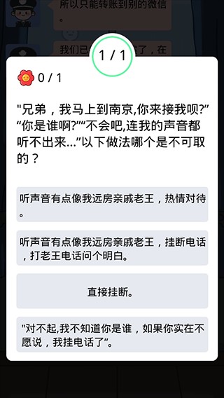 每一关都暗藏真实案件改编的思维陷阱,拒绝套路化设计——你需要跳出惯性思维,识别话术中的时间压迫、权威伪装与情感诱导;