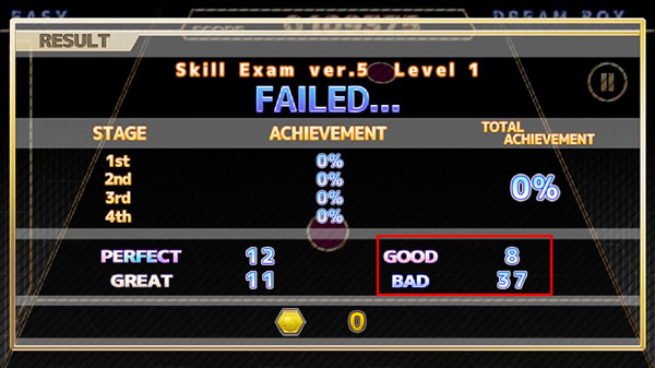 4、一曲终了,系统即时结算:精准率、连击数、总得分、Miss统计一目了然