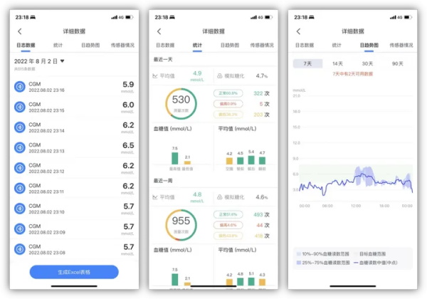 生成多维可视化报告:包括“血糖在目标范围内时间(TIR)”、“日/周/月趋势图”、“高低血糖事件统计”,让控糖效果一目了然。