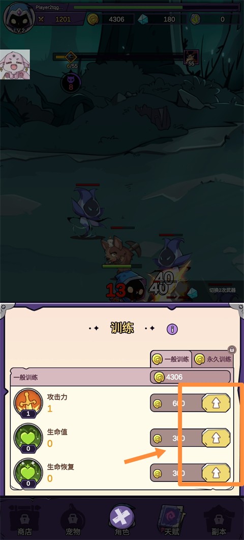 3、每场战斗掉落丰厚金币,前往【训练场】实时提升生命、攻击、暴击等核心属性,让下一层更具压制力。