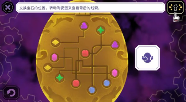 ? 陶瓷蛋谜题:依据蛋壳背面刻痕的走向规律,精准操控正面宝石的移动顺序,让纹路与结构完成严丝合缝的咬合。