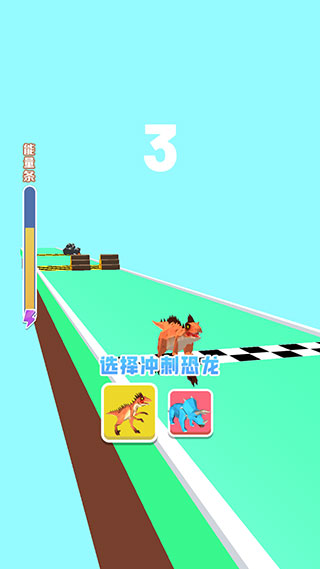 抵达终点线前,系统将弹出三只可选恐龙供你抉择——不同恐龙赋予差异化的冲刺爆发力与持续时间。选定后,狂点屏幕下方加速按钮,推动恐龙完成最后一搏:冲刺距离越远,结算奖励越丰厚!不仅可直接领取双倍金币(支持免广告领取),更将持续积累新恐龙解锁进度,驱动你的进化图鉴不断扩张。