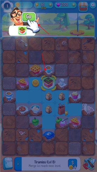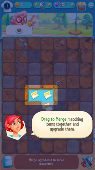 核心玩法即“合成升级”:将相同食物拖拽组合,即可诞生更高级料理(如苹果+苹果=苹果派),解锁新配方与制作台;