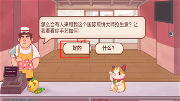 第一步:用一道完美煎饼征服前任摊主!点击【好的】开启挑战,用实力说话。