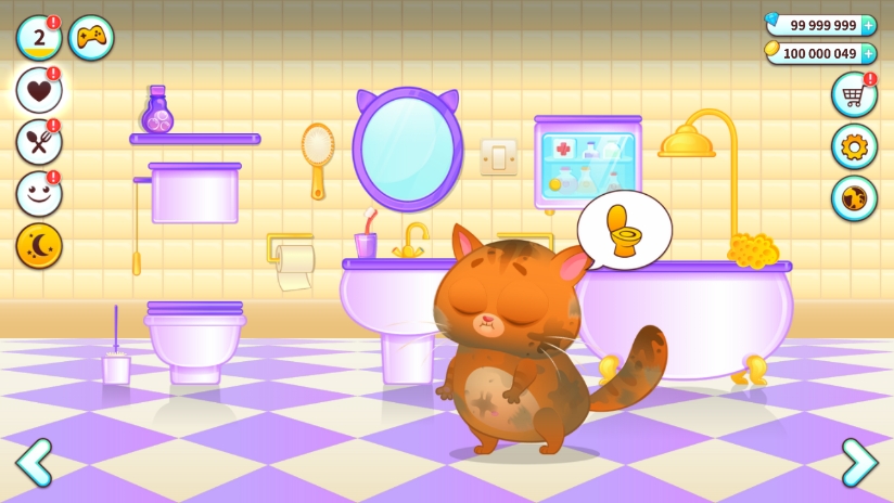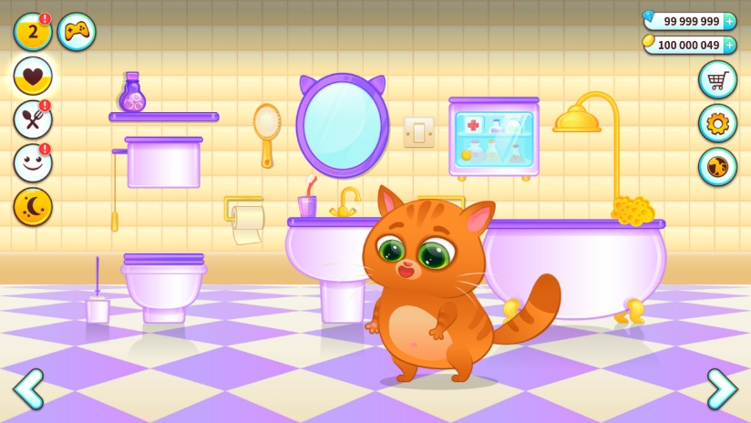 Bubbu有点脏?快带它去浴池洗澡!长按花洒出水,再点击旁边的沐浴球,搓揉清洗,瞬间焕然一新;